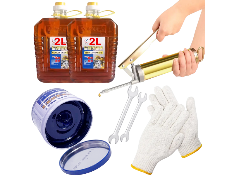 Pistol lubrifiere automata 400 ml, 4 l ulei pentru reductor, 400 g unsoare termica pe baza de litiu -30℃-260℃. Manusi protectie, chei pentru asamblare/intretinere