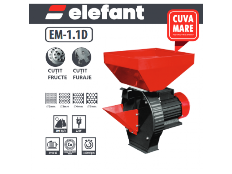 Moara de cereale+Rozatoare Elefant EM1.1D