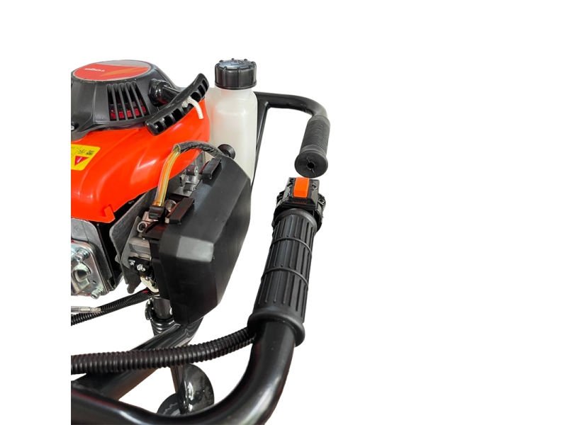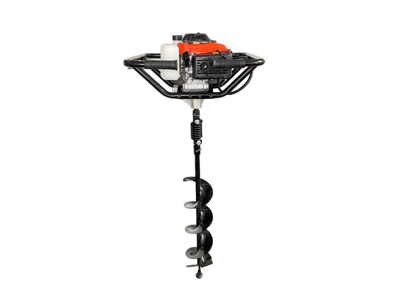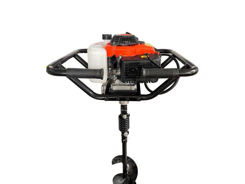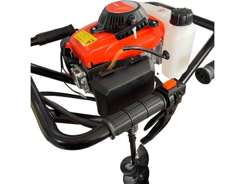 Burghiul inclus (Ø150 mm, adâncime 800 mm) permite săparea precisă, ideală pentru stâlpi, arbori sau fundații. Dispozitivul este compatibil și cu burghie de 100 mm și 200 mm, ceea ce îl face versatil pentru orice nevoie din grădină sau șantier.